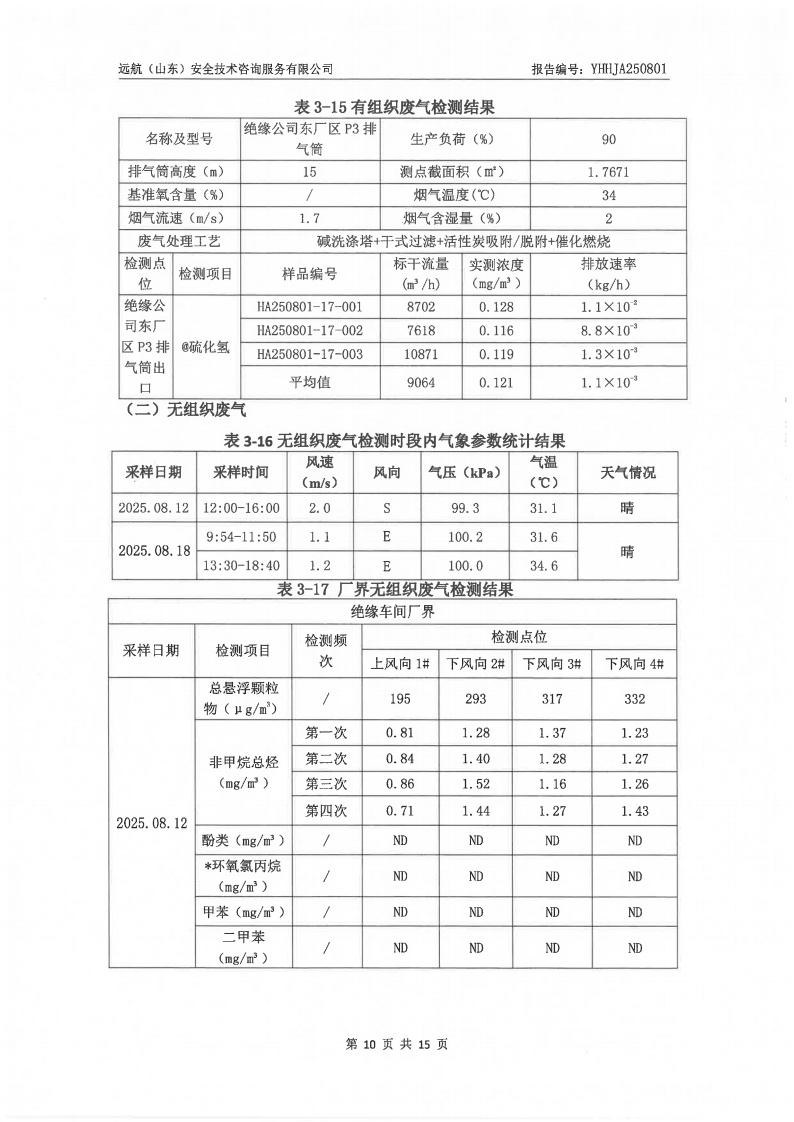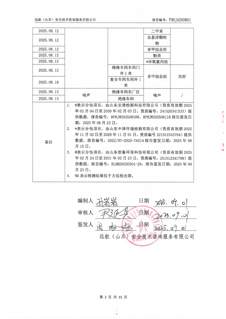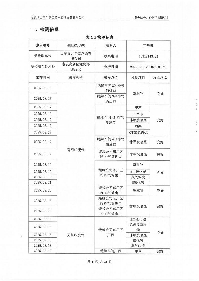 山东泰开电器绝缘有限公司2025年三季度检测报告