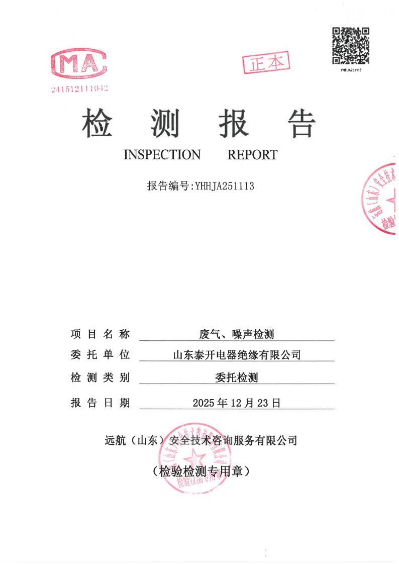 山东泰开电器绝缘有限公司2025年四季度检测报告